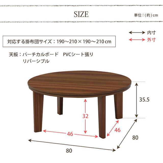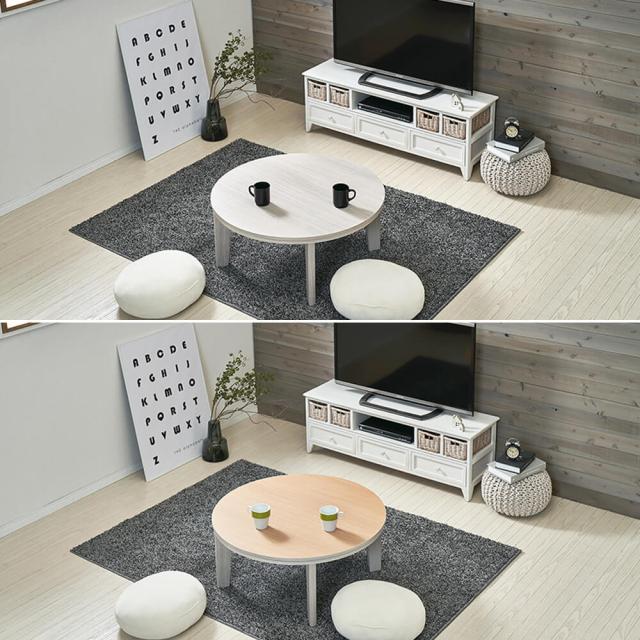 こちらの商品は、幅80cm・丸タイプの商品ページとなります。冬はこたつ、オフシーズンはテーブルとして。