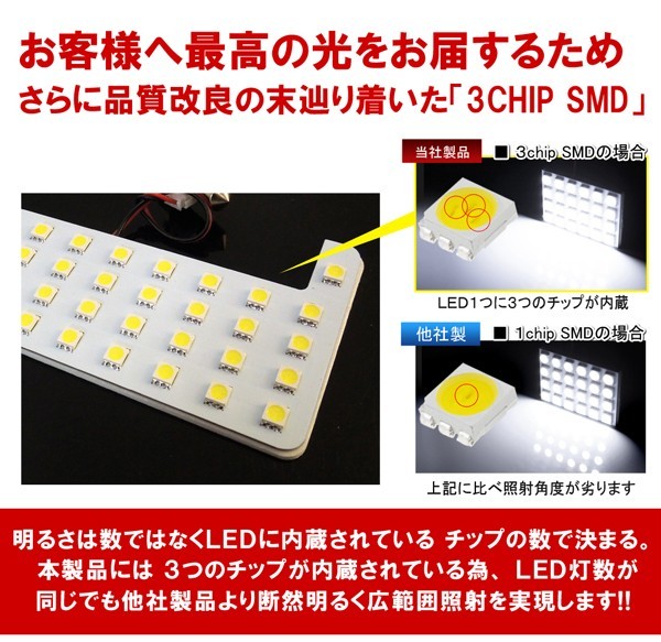 【適合情報】適合車種 ジェイド適合型式 FR4/FR5適合年式 H27.5〜【LED内訳】・センタールームランプ 51SMD×1・サードラゲッジランプ 51SMD×1 合計 102灯【商品説明】ジェイド専用のジャストフィットバージョンのルームランプです。専用サイズに可能な限り敷き詰めた、SMD搭載計102灯の圧倒的大多数で驚きの明るさへ白い光に照らされながらもLEDにより省電力化も実現できます特別な加工など必要なく、数十分の時間で交換できます。【注意・特記事項】※オプション・グレードにより取付出来ない場合がありますので、 お車のルームランプの形状と商品画像の形状をご確認の上 ご購入ください。 ※パッケージ(外箱)は予告なく変更となる場合があります。【送料】全国一律送料無料!! ※ゆうパケット発送の為、代引はご利用になれません。