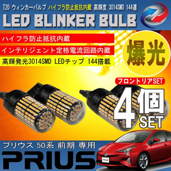 プリウス 50系 前期 T20 LED ウィンカーバルブ 4個セット 3014SMD 144連 爆光 ハイフラ防止抵抗内蔵