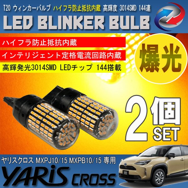 ヤリスクロス 10系 15系 T20 LED ウィンカーバルブ 2個セット 3014SMD 144連 爆光 ハイフラ防止抵抗内蔵