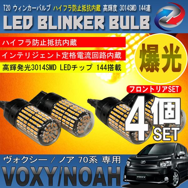 ヴォクシー ノア 70系 T20 LED ウィンカーバルブ 4個セット 3014SMD 144連 爆光 ハイフラ防止抵抗内蔵