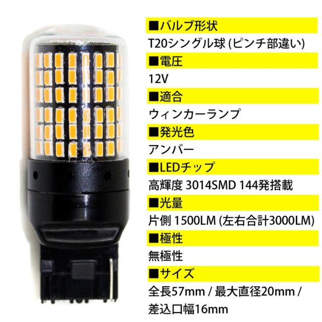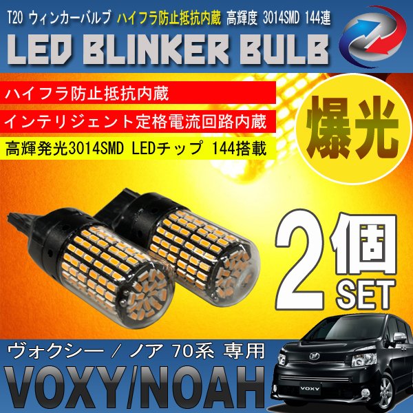ヴォクシー ノア 70系 T20 LED ウィンカーバルブ 2個セット 3014SMD 144連 爆光 ハイフラ防止抵抗内蔵