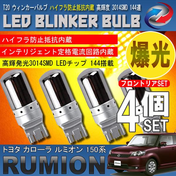カローラ ルミオン 150系 T20 LED ウィンカーバルブ ステルス 4個セット 3014SMD 144連 爆光 ハイフラ防止抵抗内蔵