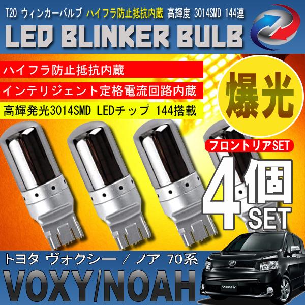 ヴォクシー ノア 70系 T20 LED ウィンカーバルブ ステルス 4個セット 3014SMD 144連 爆光 ハイフラ防止抵抗内蔵