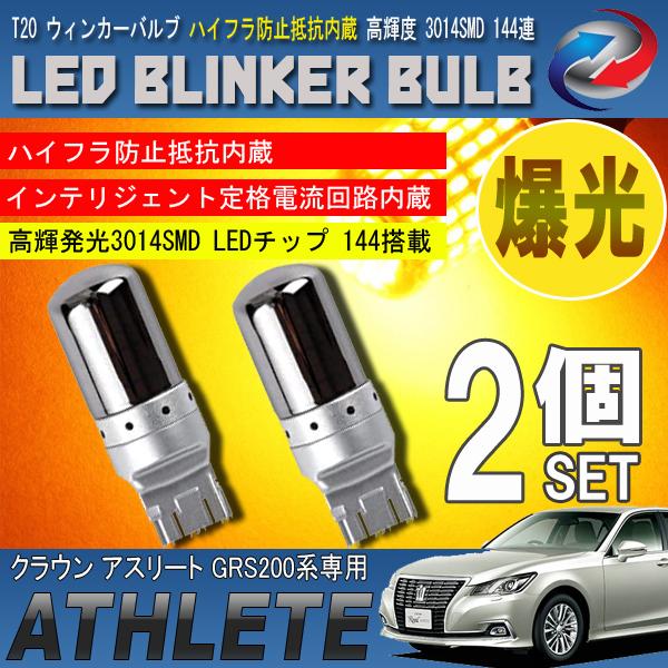 クラウン アスリート 200系 T20 LED ウィンカーバルブ ステルス 2個セット 3014SMD 144連 爆光 ハイフラ防止抵抗内蔵