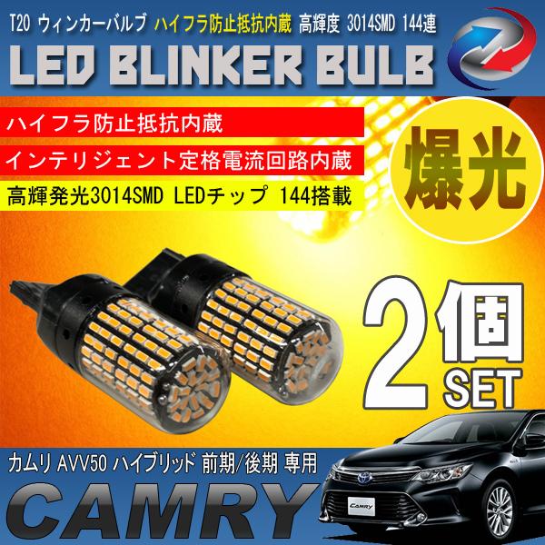 カムリ ハイブリッド 50系 T20 LED ウィンカーバルブ 2個セット 3014SMD 144連 爆光 ハイフラ防止抵抗内蔵