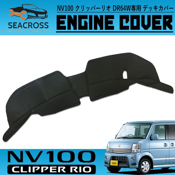 [商品名]フロントデッキカバー[適合車種]日産 NV100 クリッパーリオ[適合型式]DR64W[適合年式]H25.12〜H27.2[適合グレード]E / G [商品説明]NV100 クリッパーリオ専用設計 PVCレザー調 エンジンフードカバーです。運転席/助手席のドレスアップになり、汚れ防止やエンジンの防音や断熱になります。お取り付けは、マジックテープで固定するだけの簡単装着になります。