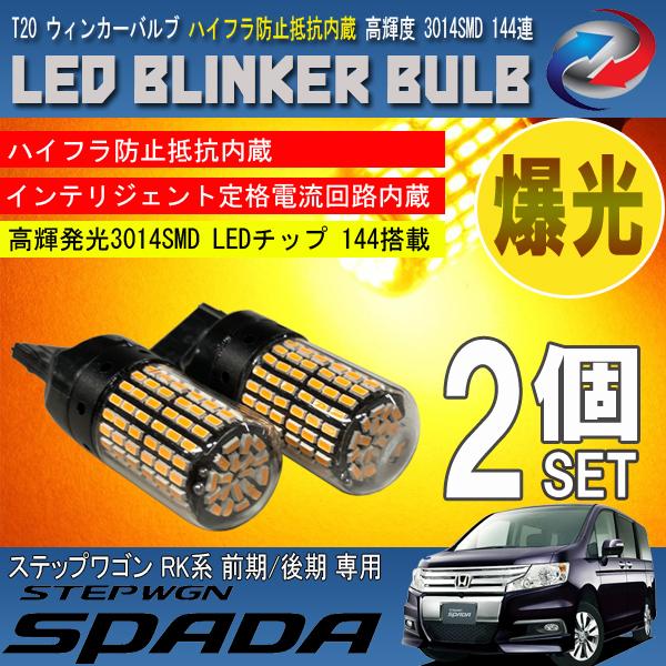 ステップワゴン スパーダ RK 前期 後期 T20 LED ウィンカーバルブ 2個セット 3014SMD 144連 爆光 ハイフラ防止抵抗内蔵
