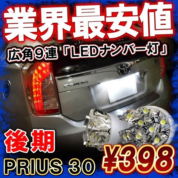プリウス30系 後期 T10 T16 LED ライセンスランプ ナンバー灯 9連 2個セット