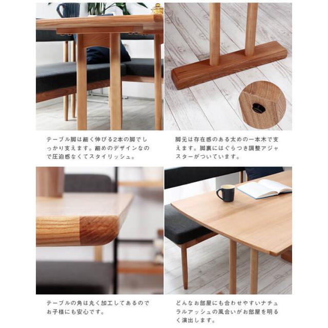 どんなお部屋にも溶け込むナチュラルアッシュの風合いが、落ち着いた印象を醸し出すダイニングテーブル。