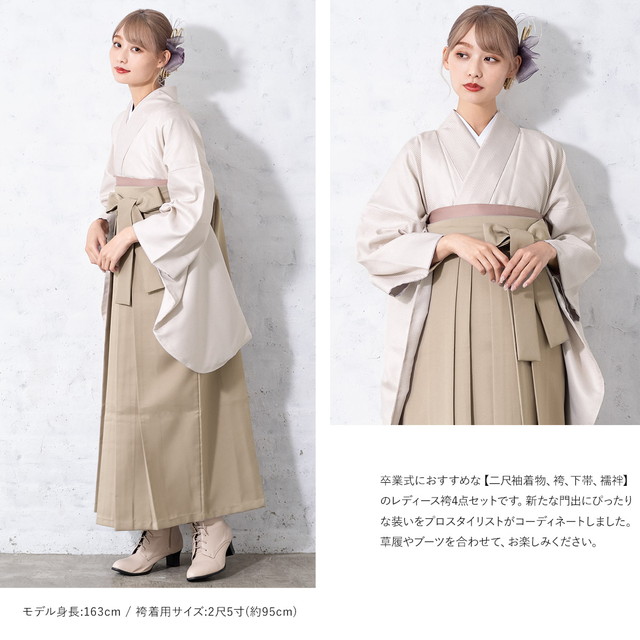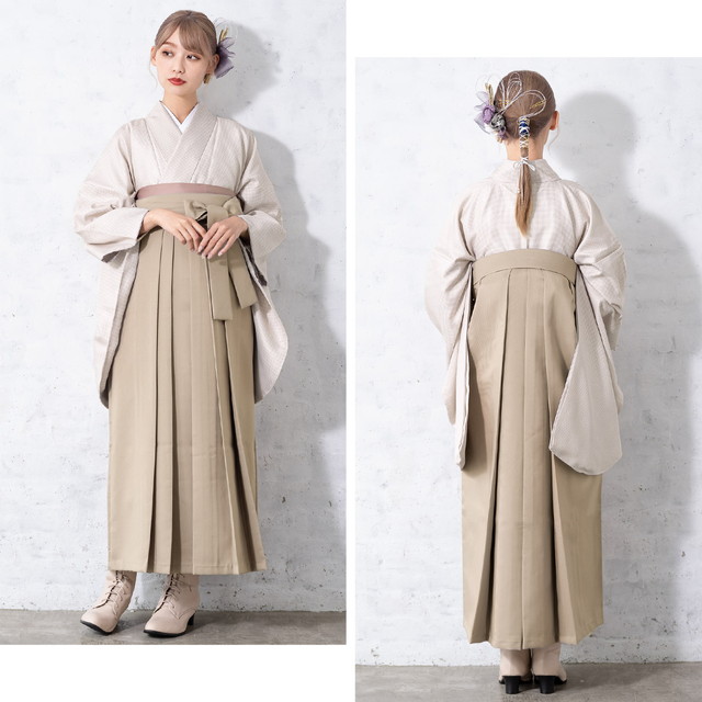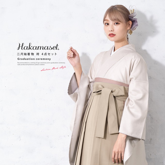 卒業式 袴セット 購入 大学生 レディース 小学生 袴 ボヌールセゾン ベージュ チェック 格子柄 小振袖 女性 袴4点セット 送料無料