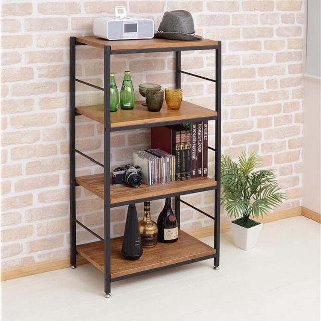 Zaga(ザガ) アンティーク調4段ラック 棚 シェルフ オープンシェルフ オープンラック 木製 ディスプレイラック ナチュラル 北欧 4段 四段 スリム 収納 コンパクト 送料無料