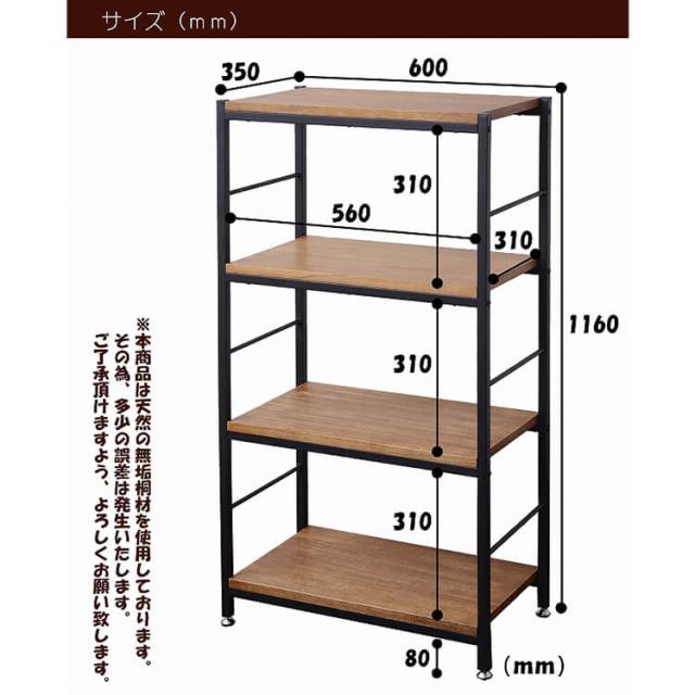 無垢の桐材を贅沢に使用し、ハンドメイドでアンティーク調に仕上げたミッドセンチュリーテイストのシンプルな幅60cmの4段ラックZaga(ザガ)。