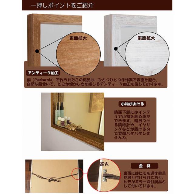 Zaga(ザガ) アンティーク調壁掛けミラー 幅45cmタイプ 鏡 かがみ ミラー 鏡台 壁掛け 全身 卓上 割れない コンパクト 送料無料 おしゃれ 夏 BBハウス ZMB−450 桐 アンティーク