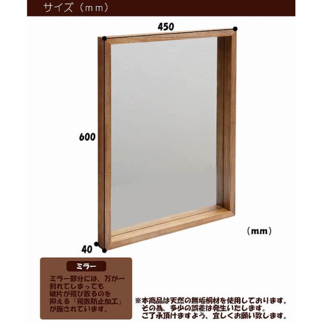 無垢の桐材を贅沢に使用し、ハンドメイドでアンティーク調に仕上げたミッドセンチュリーテイストのシンプルな壁掛けミラーZaga(ザガ)幅45cmタイプ。