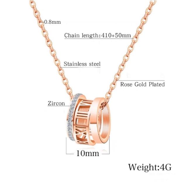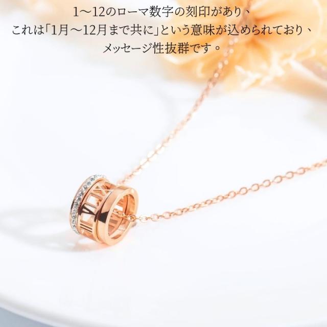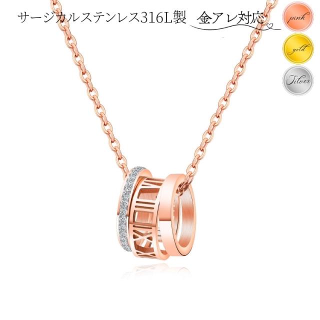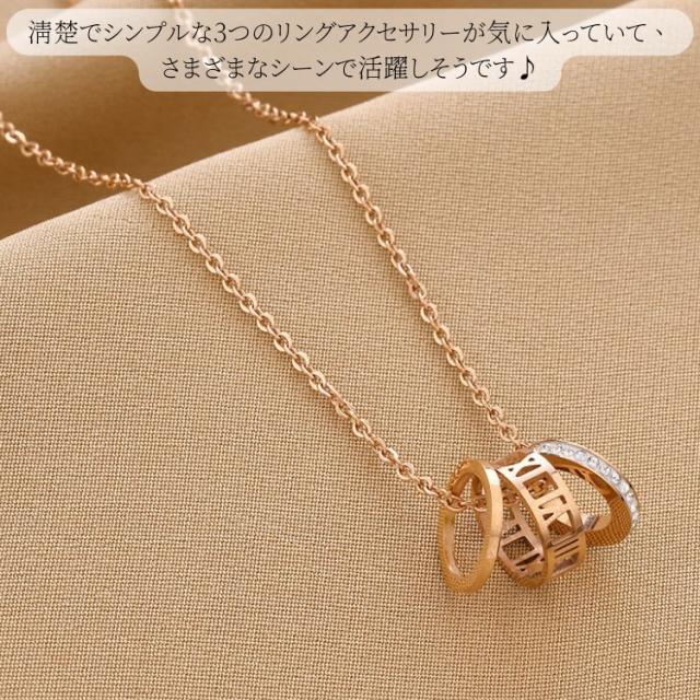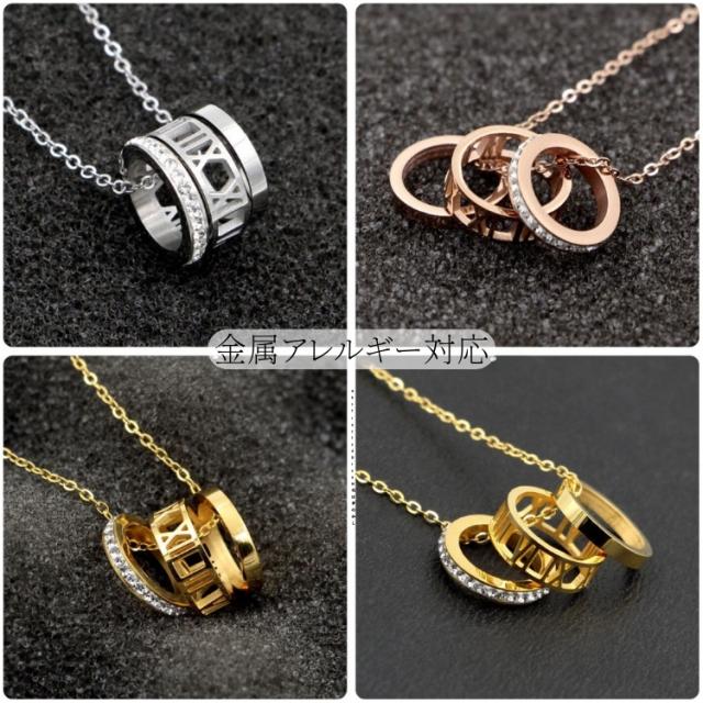 つけっぱなしok サージカルステンレス ローマ数字 3連リング ネックレス レディース シンプル 金属アレルギー 対応 CZダイヤ(ジルコニア) リング 18kgp ピンクゴールド ゴールド シルバー ステンレス チェーン 小豆 細め 錆びない ネックレス ナンバー 大人 かわいい 華奢