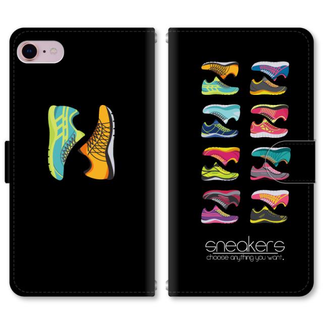 スマホケース 手帳型 iPhone13 iPhoneSE2 アイフォン 8 aquos sense GooglePixel xperia galaxyなど多機種制作対応 m1032_ブラックスニーカー