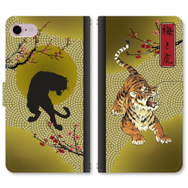 スマホケース 手帳型 iPhone13 iPhoneSE2 アイフォン 8 aquos sense GooglePixel xperia galaxyなど多機種制作対応 m1037_梅と虎