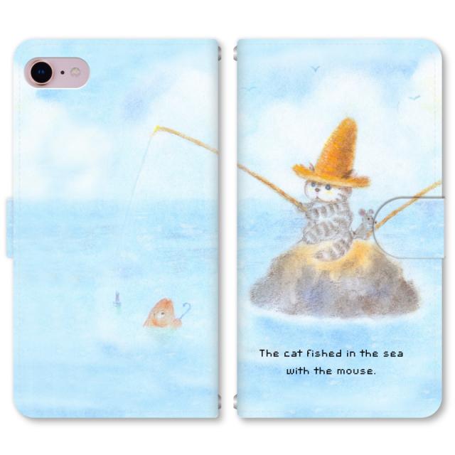 スマホケース 手帳型 iPhone13 iPhoneSE2 アイフォン 8 aquos sense GooglePixel xperia galaxyなど多機種制作対応 m1061_海釣りの麦わらネコ