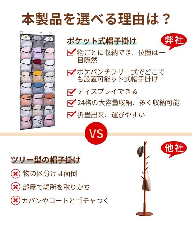簡単収納:ディスプレイ出来て大切な帽子が一目瞭然。取り出しやすく、しまいやすい。