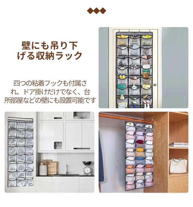 幅広い適用性:4つのドア掛けフックや4つの粘着フック付き、どこでも利用出来ます。