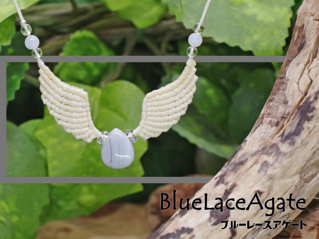 魅了する魔石『ブルーレースアゲート』天使の羽根!?羽翼マクラメ編トップネックレス