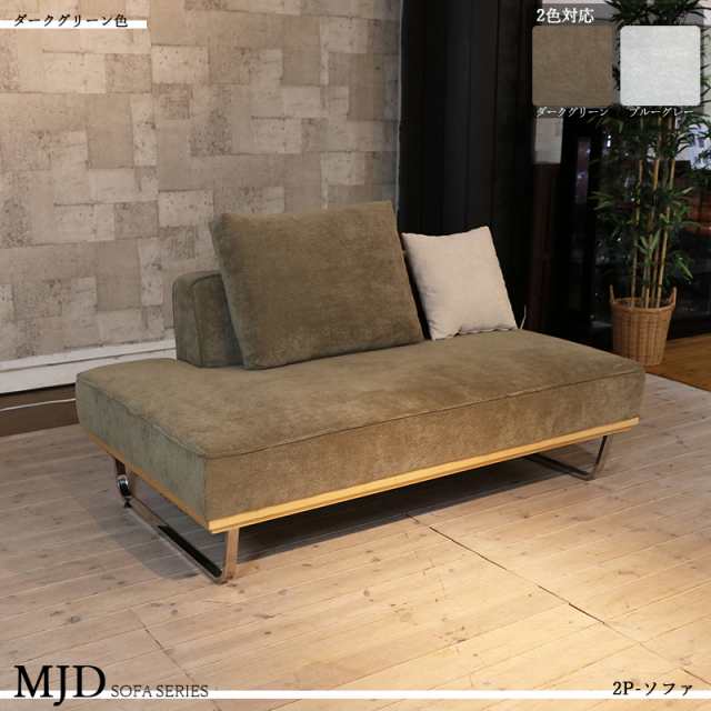 MJD-2PSF 二人掛けソファー 大小クッション2個付 ダークグリーン色/カーキー色 スエード調布張り 幅154×奥行き95×高さ67cm 座面高:42cm スチール脚 北欧 完成品 ベンチタイプ