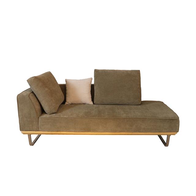 MJD-CCSF カウチ片肘二人掛けソファー SOFA 大小クッション3個付 ダークグリーン色/カーキー色 スエード調布張り スチール脚 幅185×奥行き95×高さ67cm 座面高:42cm 北欧 完成品 ベンチタイプ