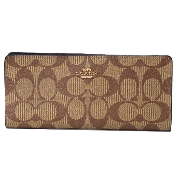 コーチ 長財布 COACH コーティングキャンバス スムースレザー シグネチャー スリム ウォレット 二つ折り 札入れ 長財布 カーキ×ブラック C3549