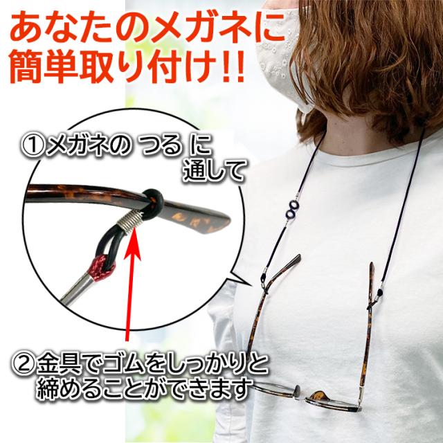 メガネやサングラス、老眼鏡等のかけ外しにとても便利なメガネチェーンです。