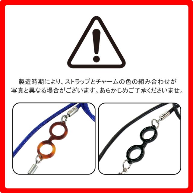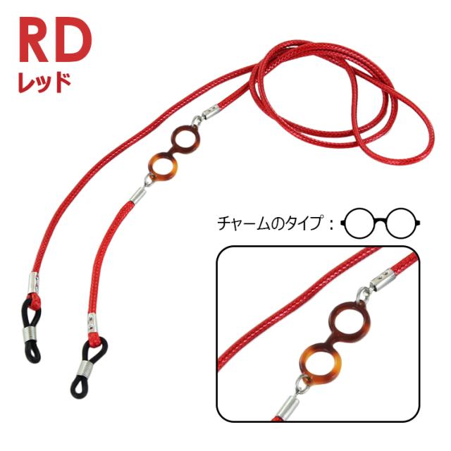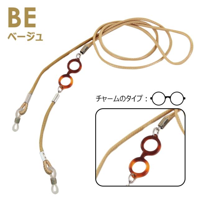 PK ピンク IV アイボリー BE ベージュ RD レッド GY グレー BR ブラウン GR グリーン BK ブラック BU ブルー DBR ダークブラウン | ・全長約72cm(誤差1〜2cm) ・メガネ型チャーム 約28mm×11mm ・ヒモ幅 約2mm ●素材 ・紐:ポリエステルワックスコード ・チャーム:プラスチック ・留め金具:亜鉛合金、シリコン |