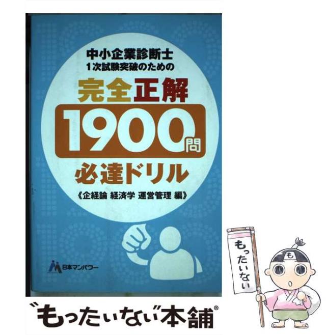 商品名:【中古】 中小企業診断士1次試験突破のための完全正解1900問必達ドリル 企業経営理論, 経済学・経済政策, 運営管理編 / 山口文紀、日本マンパワー中小企業 / [単行本]【メール便送料無料】