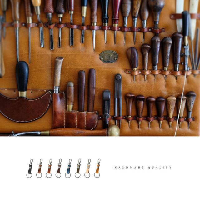 シンプルなデザインのレザーキーホルダーです。単体で使用するのはもちろんウォレットチェーンなどのレザーアイテムと組み合わせても使えます。