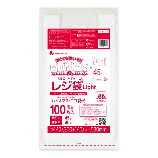 【バラ販売】BPRSK-45bara バイオマスプラスチック使用レジ袋 薄手タイプ 西日本45号(東日本45号) 0.016mm厚 乳白 100枚 薄手タイプ ブロック有
