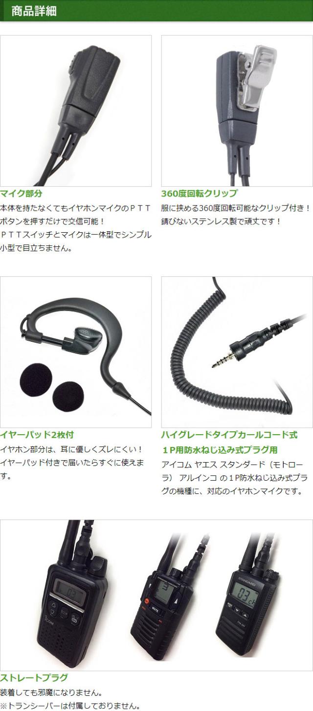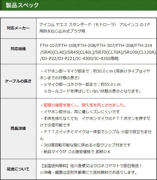 アイコム ヤエス スタンダード アルインコ イヤホンマイク 耳掛式 ハイグレード カールコード 5個セット インカムマイク 1ピン防水ねじ込み式 IC-4300 IC-4350 FTH-108 FTH-208 FTH-307 FTH-308 FTH-314 SR-40 SR-45 SR-70 SR-100 DJ-P221用 EME-36A HM-177PI SSM-59互換品