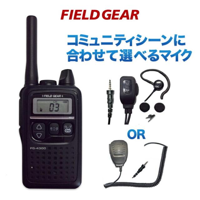 FIELDGEAR 特定小電力トランシーバーFG-4300×コミュニティシーンに合わせて選べるマイクセット 防水型スピーカーマイクロホン(IPX5)相当 又は 2WAYインナー式兼用取り掛け式イヤホンマイクからお選びください