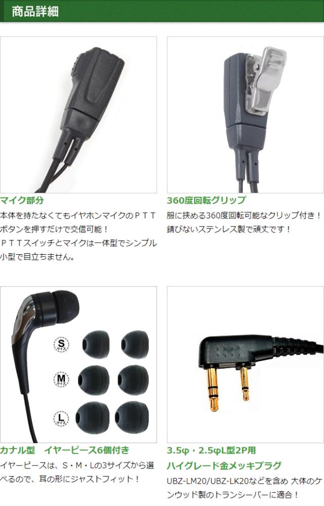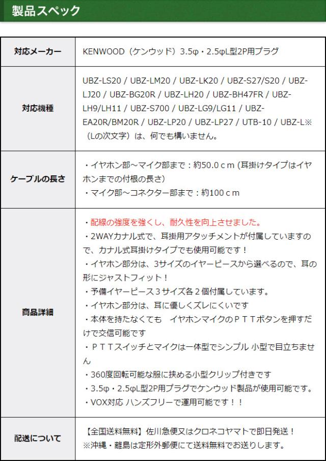ケンウッド イヤホンマイク 2ピン 2WAY カナル式 KENWOOD デミトス DEMITOSS用 UBZ-LS20 UBZ-LP20 UBZ-LM20 UBZ-EA20R UBZ-LK20 UBZ-LP27R UBZ-BM20R UBZ-S20 UTB-10用 トランシーバー用 イヤフォンマイク インカムマイク EMC-3 EMC-3A EMC-11互換品 ハンズフリー VOX対応