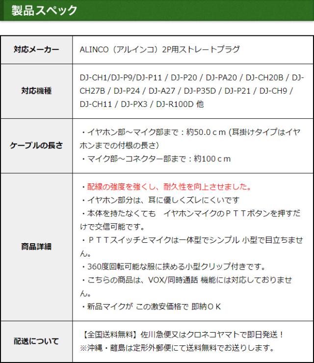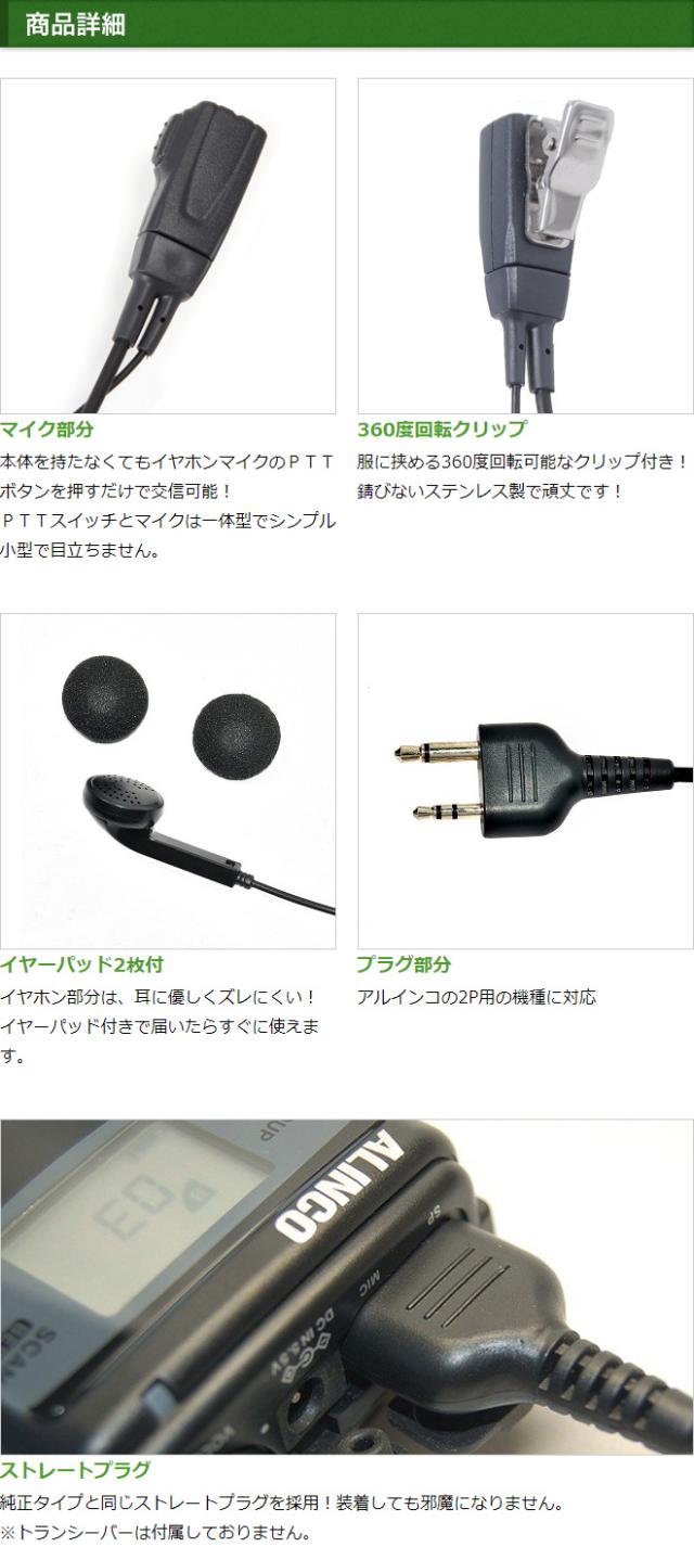 アルインコ イヤホンマイク ALINCO 2ピン用 トランシーバー用 イヤフォンマイク インカムマイク DJ-P9 DJ-P11 DJ-P20 DJ-PA20 DJ-CH20B DJ-CH27B DJ-P24 DJ-A27 DJ-P35D DJ-P21 DJ-CH1 DJ-CH9 DJ-CH11 DJ-PX31 DJ-R100D用【EME-34A EME-52A 互換品番】