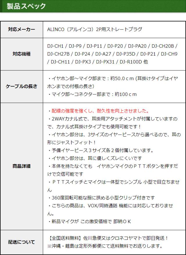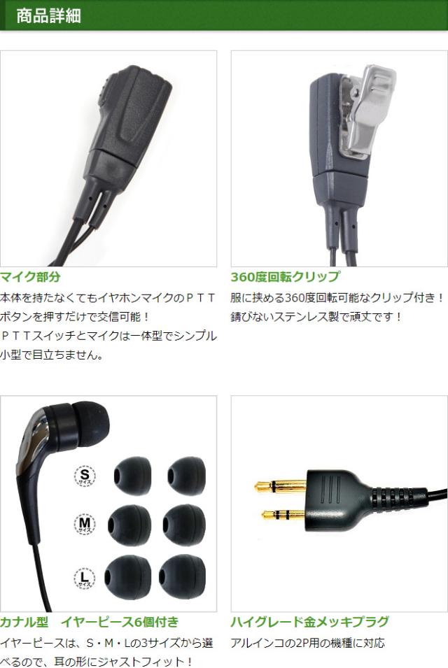 アルインコ イヤホンマイク ALINCO 2ピン用 2WAY カナル式 トランシーバー用 イヤフォンマイク インカムマイク DJ-P9 DJ-P11 DJ-P20 DJ-PA20 DJ-CH20B DJ-CH27B DJ-P24 DJ-A27 DJ-P35D DJ-P21 DJ-CH1 DJ-CH9 DJ-CH11 DJ-PX31 DJ-R100D用【EME-34A EME-52A互換品番】