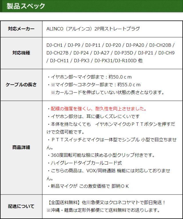 アルインコ イヤホンマイク ALINCO 2ピン用 トランシーバー用 ハイグレードタイプカールコード式 インカムマイク DJ-P9 DJ-P11 DJ-P20 DJ-PA20 DJ-CH20B DJ-CH27B DJ-P24 DJ-A27 DJ-P35D DJ-P21 DJ-CH1 DJ-CH9 DJ-CH11 DJ-PX31 DJ-R100D用【EME-34A EME-52A互換品番】