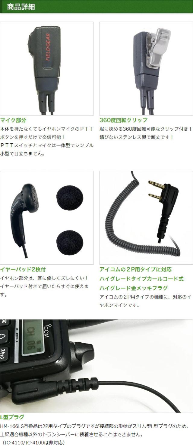 アイコム イヤホンマイク ICOM インナーイヤー型 スリムL型 2ピン用 トランシーバー用 ハイグレードタイプカールコード式 イヤフォンマイク インカムマイク IC-DPR3 IC-DPR30 IP-50 IP-500 IP-500H 用【HM-166LS 互換品番】