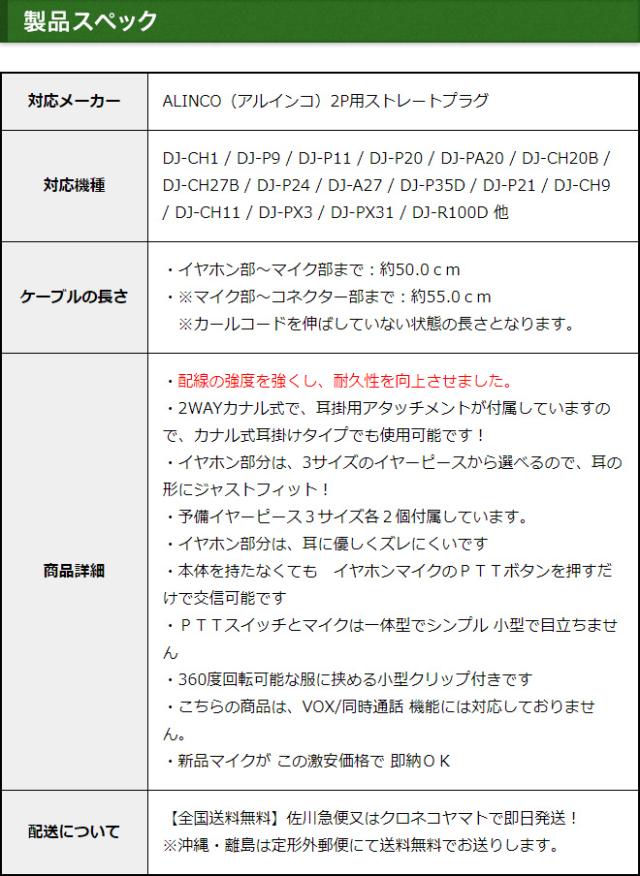 アルインコ イヤホンマイク ALINCO 2ピン用 2WAY カナル式 トランシーバー用 ハイグレードカールコード インカムマイク DJ-P9 DJ-P11 DJ-P20 DJ-PA20 DJ-CH20B DJ-CH27B DJ-P24 DJ-A27 DJ-P35D DJ-P21 DJ-CH1 DJ-CH9 DJ-CH11 DJ-PX31 DJ-R100D用 EME-34A EME-52A互換品番