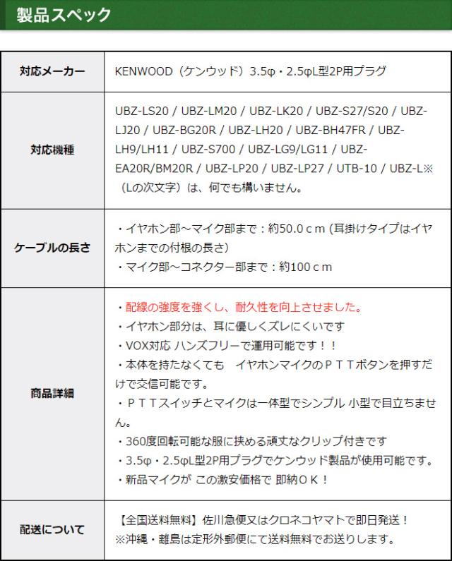 ケンウッド イヤホンマイク 2ピン KENWOOD デミトス DEMITOSS用 UBZ-LS20 UBZ-LP20 UBZ-LM20 UBZ-EA20R UBZ-LK20 UBZ-LP27R UBZ-BM20R UBZ-S20 UTB-10用 インカムマイク イヤフォンマイク EMC-3 EMC-3A EMC-11互換 VOX対応【限定カラージェットブラック】