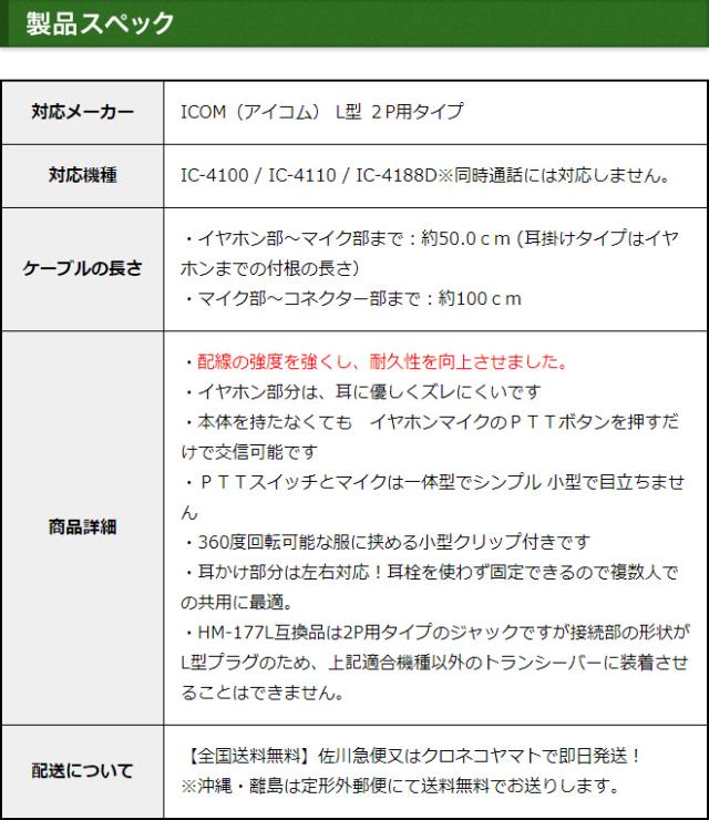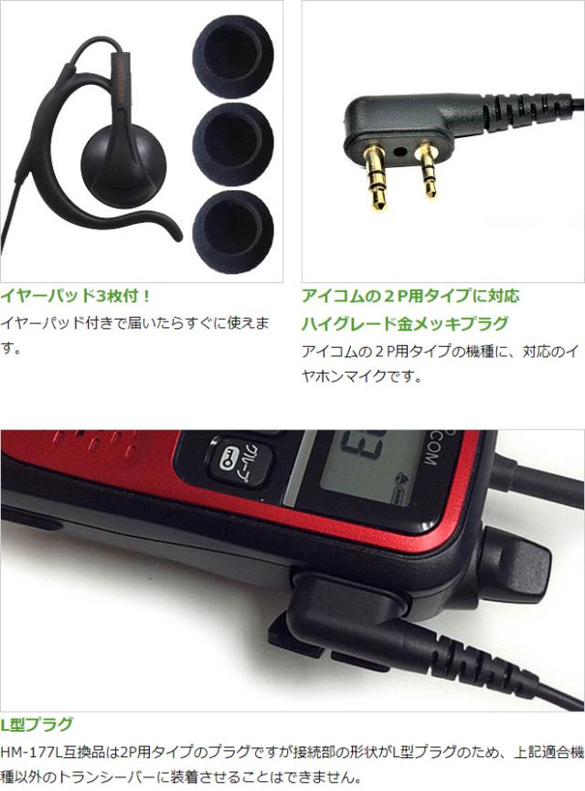 アイコム イヤホンマイク L型 2ピン オープン型 オンイヤー 耳掛け式 ICOM IC-4100 IC-4110 IC-4188D用【HM-177L互換品番】 トランシーバー用 イヤフォンマイク インカムマイク(EV2LOM)
