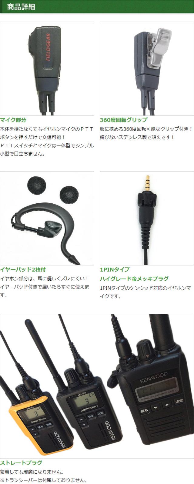 ケンウッド イヤホンマイク KENWOOD デミトス DEMITOSS用 1ピン用 耳掛け式 イヤホン付クリップマイクロホン TPZ-D553SCH TPZ-D553MCH UBZ-M51L UBZ-M51S UBZ-M31 TPZ-D510 TCP-D551 用 トランシーバー用 イヤフォンマイク インカムEMC-13 互換品 VOX対応