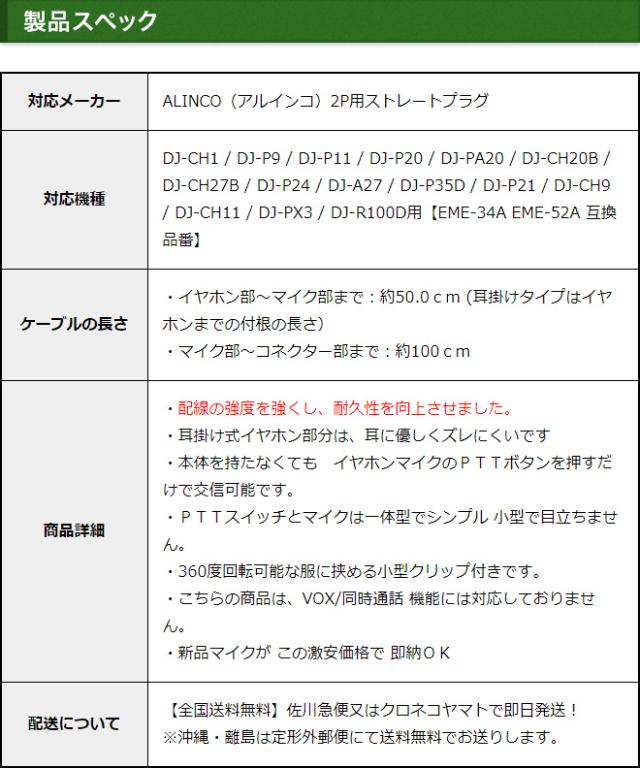 アルインコ イヤホンマイク 5個セット ALINCO 2ピン用 トランシーバー用 耳掛け式 イヤフォンマイク インカムマイク DJ-P9 DJ-P11 DJ-P20 DJ-PA20 DJ-CH20B DJ-CH27B DJ-P24 DJ-A27 DJ-P35D DJ-P21 DJ-CH1 DJ-CH9 DJ-CH11 DJ-PX31 DJ-R100D用【EME-34A EME-52A 互換品番】