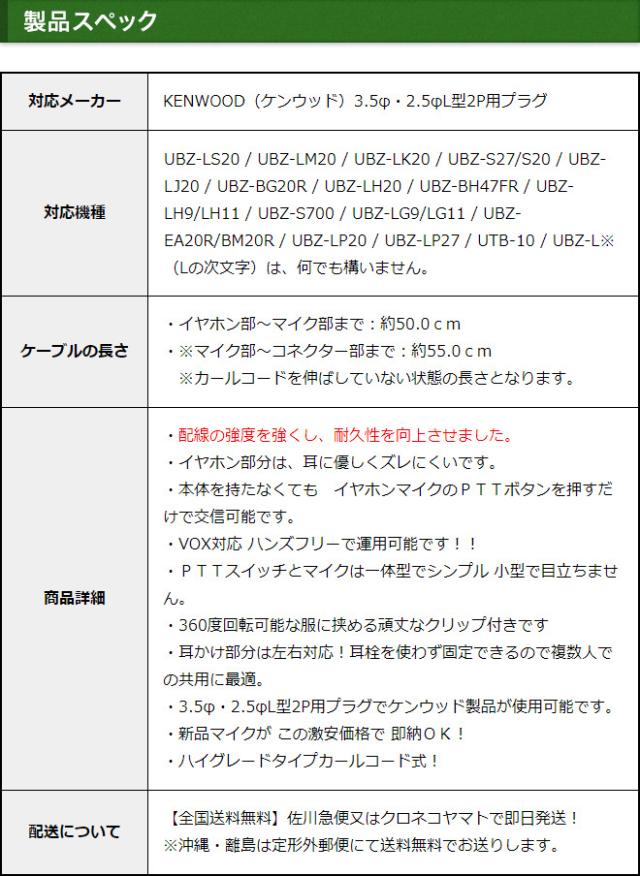 ケンウッド イヤホンマイク 2ピン用 オープン型 オンイヤー耳掛け式 KENWOOD デミトス DEMITOSS用 ハイグレードカールコード UBZ-LS20 UBZ-LP20 UBZ-LM20 UBZ-EA20R UBZ-LK20 UBZ-LP27R UBZ-BM20R UBZ-S20 UTB-10用 イヤフォン インカムマイク EMC-3/EMC-12互換 VOX対応
