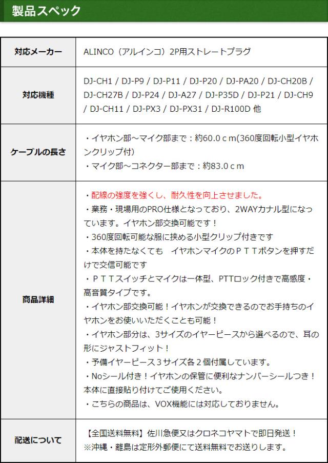 アルインコ イヤホンマイク ALINCO 2ピン用 業務 現場用 PRO仕様 2WAY カナル型 インカムマイク 高感度 高音質 DJ-P9 DJ-P11 DJ-P20 DJ-PA20 DJ-CH20B DJ-CH27B DJ-P24 DJ-A27 DJ-P35D DJ-P21 DJ-CH1 DJ-CH9 DJ-CH11 DJ-PX31 DJ-R100D用【EME-34A EME-52A互換品番】