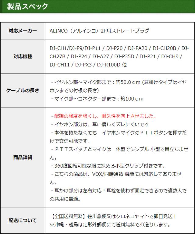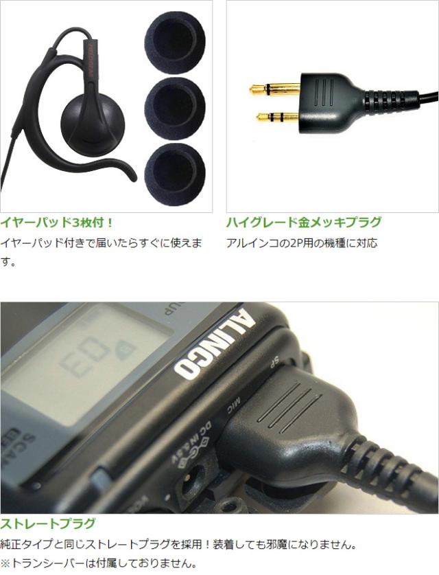 アルインコ イヤホンマイク 2ピン用 オープン型 オンイヤー 耳掛け式 ALINCO DJ-P9 DJ-P11 DJ-P20 DJ-PA20 DJ-CH20B DJ-CH27B DJ-P24 DJ-A27 DJ-P35D DJ-P21 DJ-CH1 DJ-CH9 DJ-CH11 DJ-PX31 DJ-R100D用 イヤフォンマイク インカムマイク【EME-34A EME-52A 互換品番】