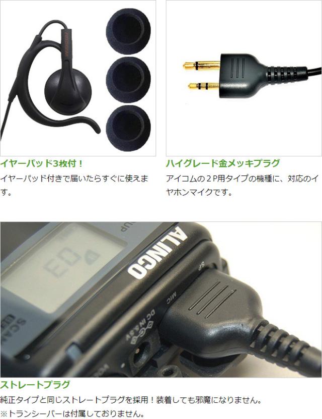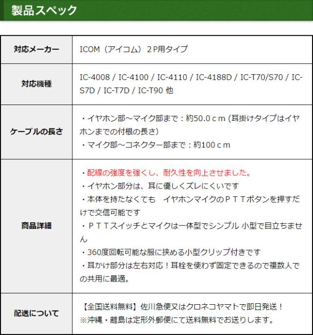 アイコム イヤホンマイク 2ピン用 オープン型 オンイヤー 耳掛け式 ICOM IC-4008 IC-4100 IC-4088D IC-T70 S70 IC-S7D IC-T7D IC-T90用 イヤフォンマイク インカムマイク【HM-177L HM-166互換品番】